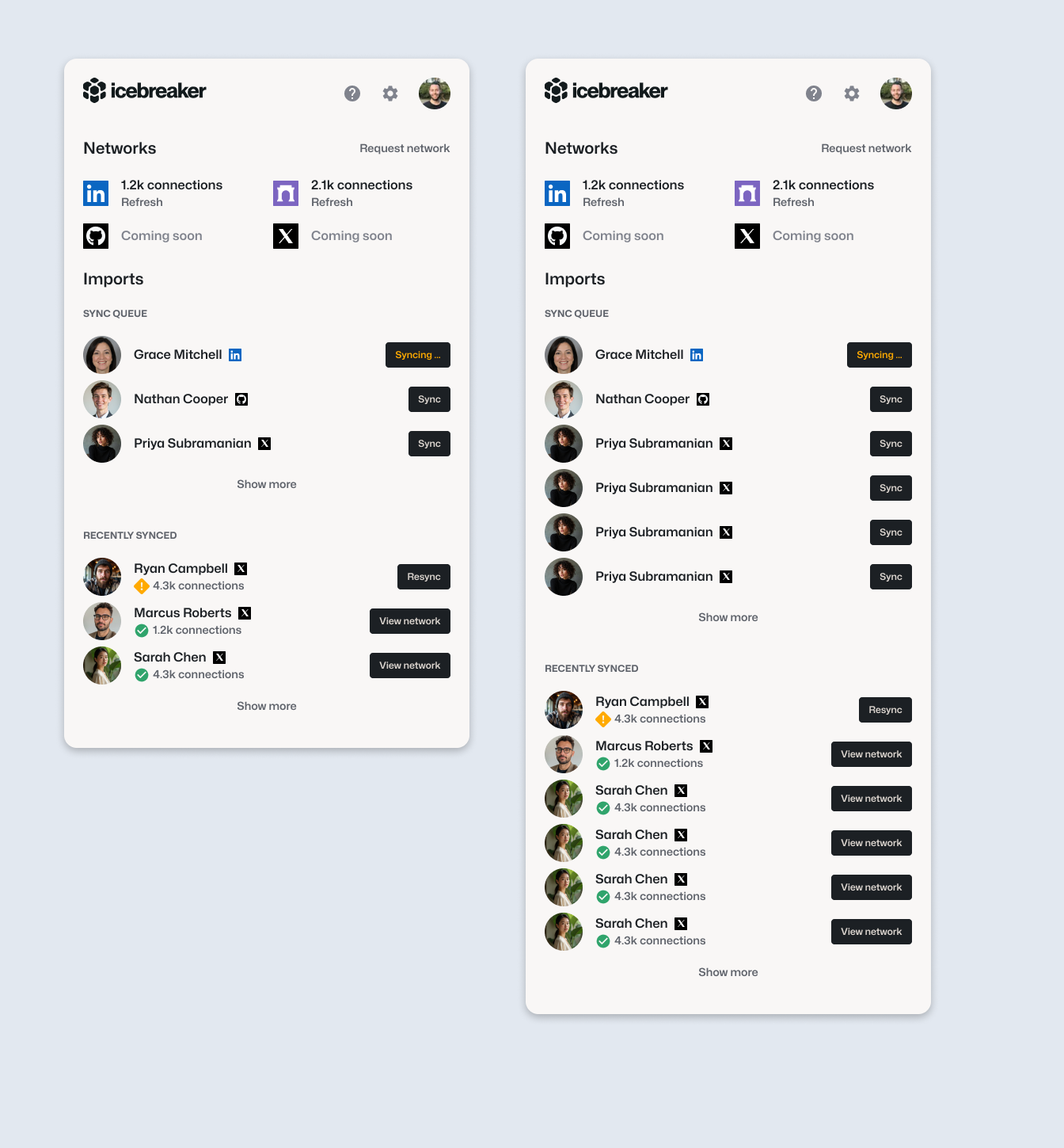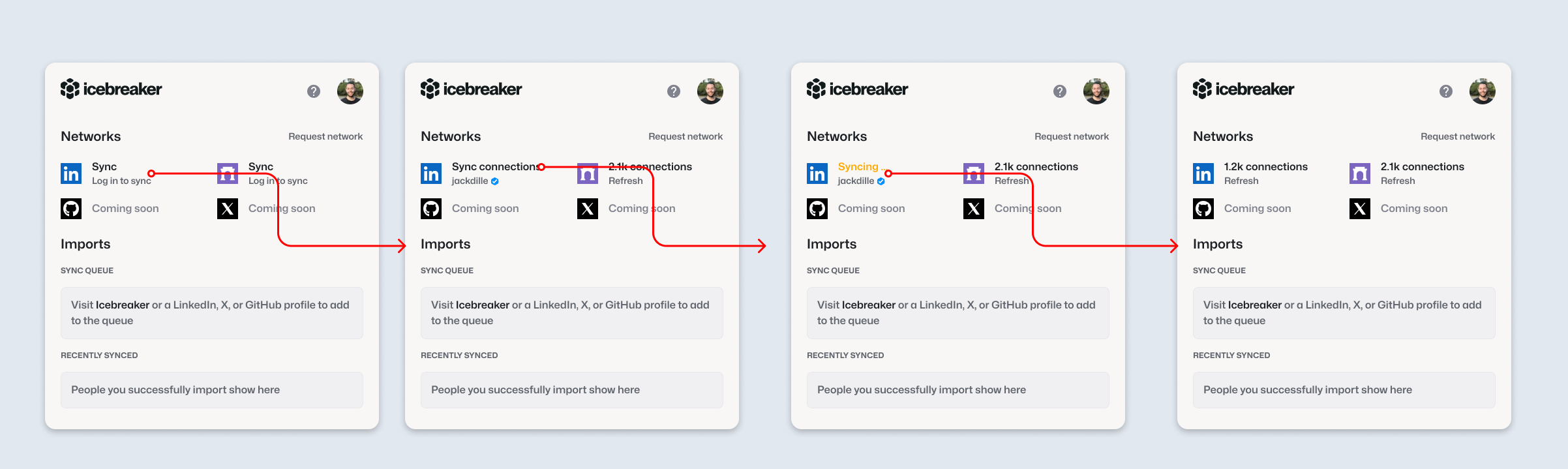 We needed a faster way so we gave recruiters a Chrome extension to sync their own and their company's networks into Icebreaker using only public data that's already visible to them.